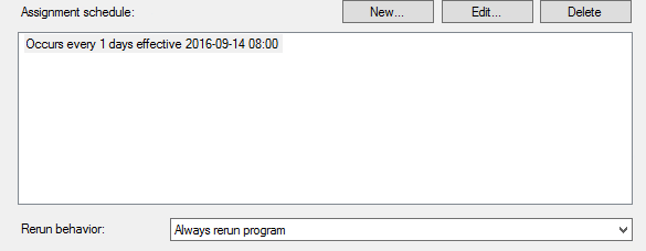 Efter detta skapas en deployment av ”NinitePro Update” programmet med ett schema. Detta avgör hur ofta applikationerna skall uppdateras. Detta kan konfigureras till ett servicefönster eller varje dag.