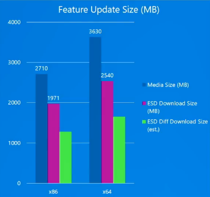 The same idea with Express Feature Updates. Determine what files have changed since the last feature update and will only download those. This could potentially save about 35% over current ESD sizes. Note that this is only available with Windows Update and Windows Update for Business with Windows 10 1709, but it’s coming for WSUS, ConfigMgr and third-party tools next year. The end user experience will be unchanged where the update is deployed and Windows performs an in-place upgrade which normally takes around 30-90 minutes depending on hardware. It’s also important to know that this will not work if you skip versions.