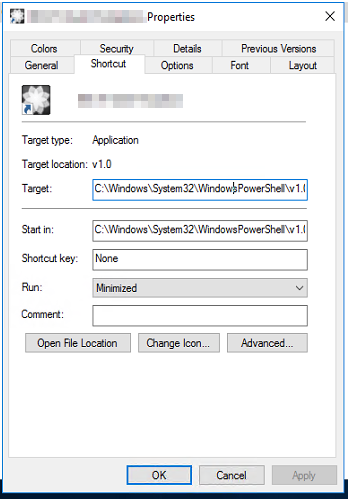 Optimal would of course be to publish a shortcut in the redirected start menu, but since the string is to long the shortcut is capped with max characters. We must therefore create a script like below.