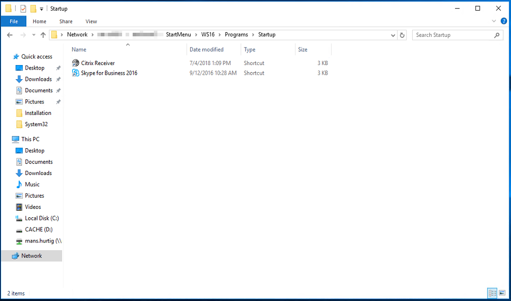 When the user logs in we want Citrix Receiver to start immediately and connect to the StoreFront. Since we are using redirected start menus for all users we published the following icon in the ”startup” folder.