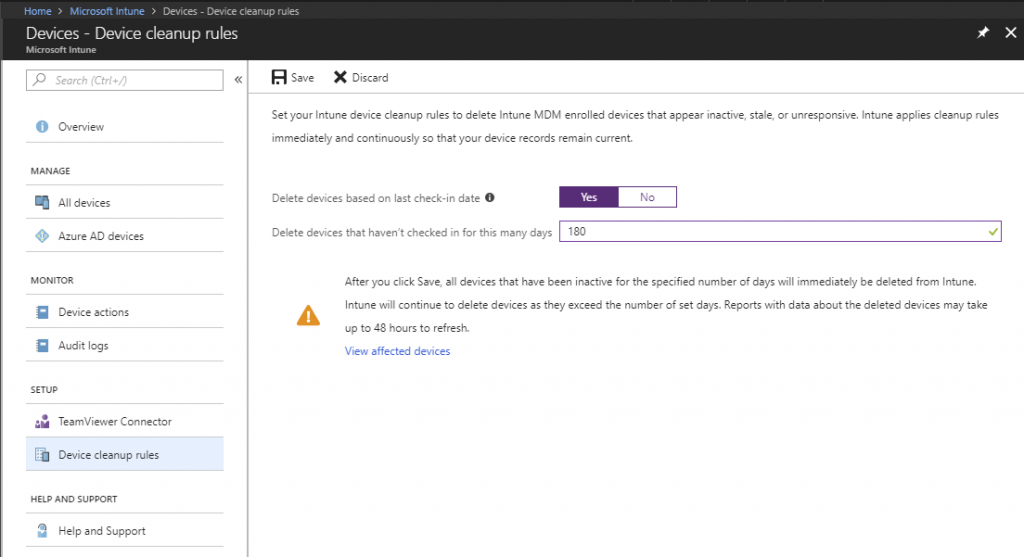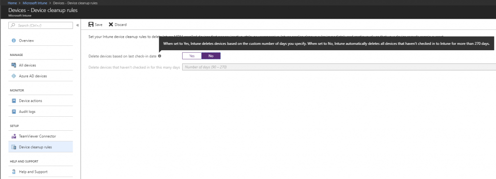 In the latest update for Microsoft Intune dated July 2, Microsoft included a new feature, Device cleanup rules:.