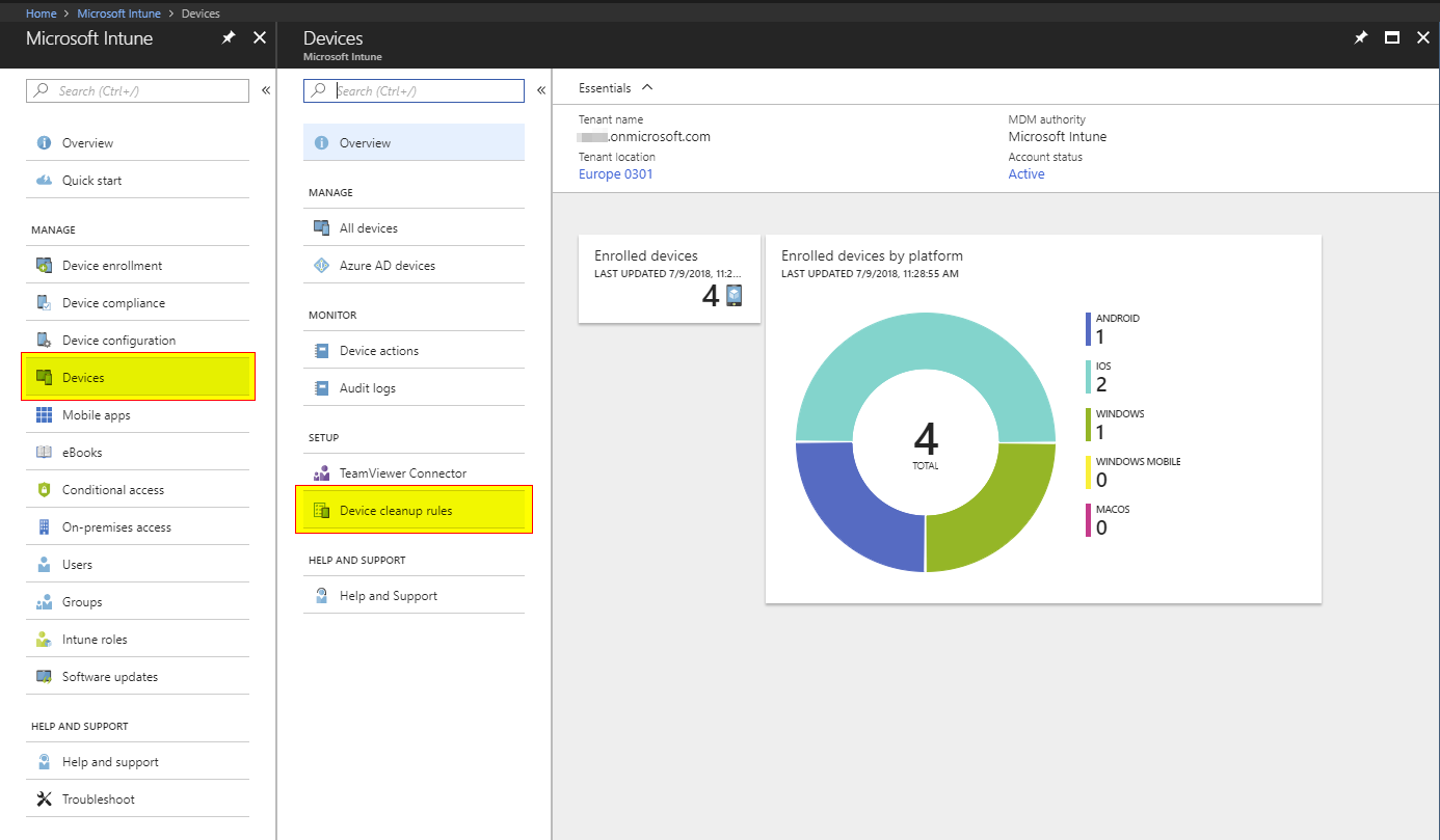 In the latest update for Microsoft Intune dated July 2, Microsoft included a new feature, Device cleanup rules:.