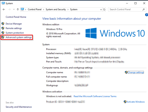 - Navigate to ’System’ and click on ’Advanced System Settings’