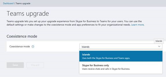 Assume you’re in a SfB-only environment and consider using Teams. If you are in Coexistance mode: Islands, it means users can use both Skype for Business and Teams simultaneously: