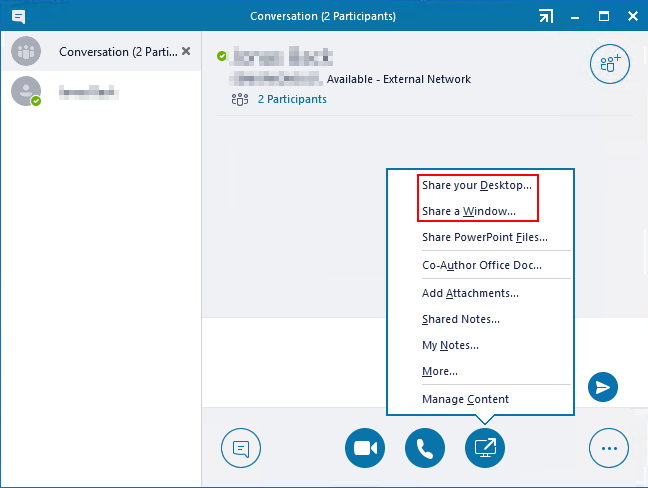 - Now, the SfB user can share their screen in the meeting as they normally do in a meeting: