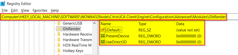 HKEY_LOCAL_MACHINE\SOFTWARE\Wow6432Node\Citrix\ICA Client\Engine\Configuration\Advanced\Modules\GfxRender