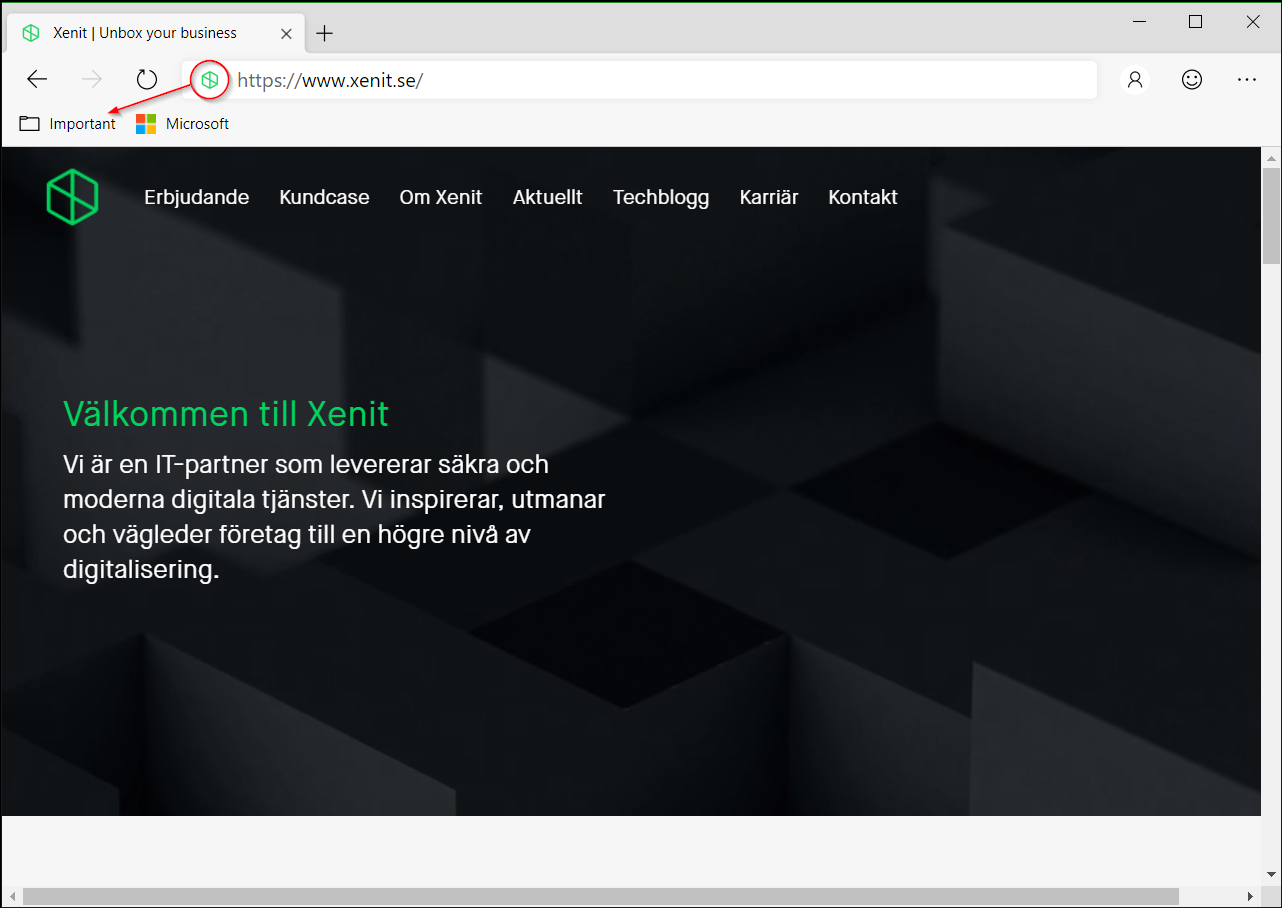 - Start by visiting the site you want to add as a Favorite, for example https://www.xenit.se/