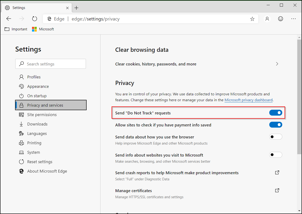 Now this is only a request and the website you are visiting can ignore this request so it’s not 100% guaranteed that you are safe after turning this option on.