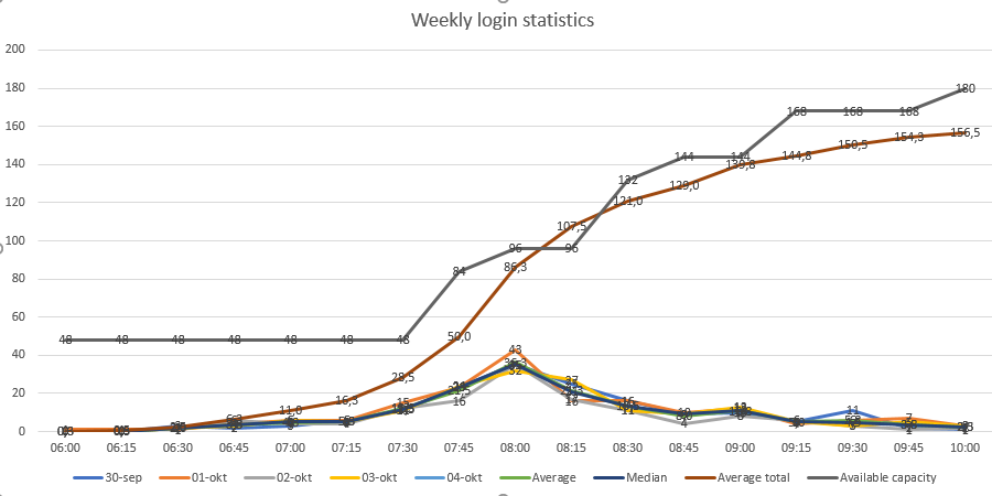 In order to be able to draw conclusions to answer my questions and aid me in optimizing capacity I had to work some magic in Excel. Following are the functions and explanations of these: