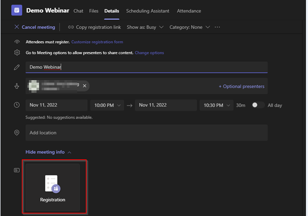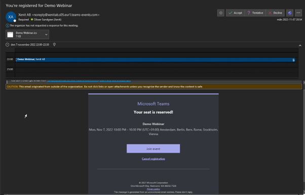 Creating a Teams meeting with required registration has a lot of positive and cool features. For example