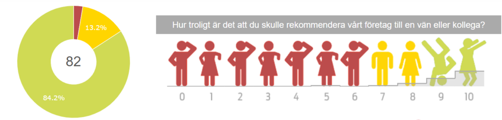 NPS är ett index från -100 till 100 och indikerar hur troligt det är att en kund skulle rekommendera Xenit till en vän eller kollega.