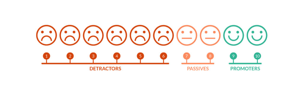 NPS mäter frågan ”Hur troligt är det att du skulle rekommendera oss till en vän eller kollega” på en skala 1–10. De som väljer 0–6 räknas som kritiker, 7–8 passiva och 9–10 räknas som ambassadörer. För att räkna ut ett NPS subtraheras andelen kritiker med andelen ambassadörer. NPS är ett index från -100 (varje kund är en kritiker) till 100 (varje kund är en ambassadör). Vad som är ett bra NPS beror på vilken bransch man är verksam i, men generellt sett brukar ett NPS-värde på 30 ses som bra, och ett värde över 50 som ett utmärkt betyg! Läs mer här: https://www.netpromotersystem.com/about/