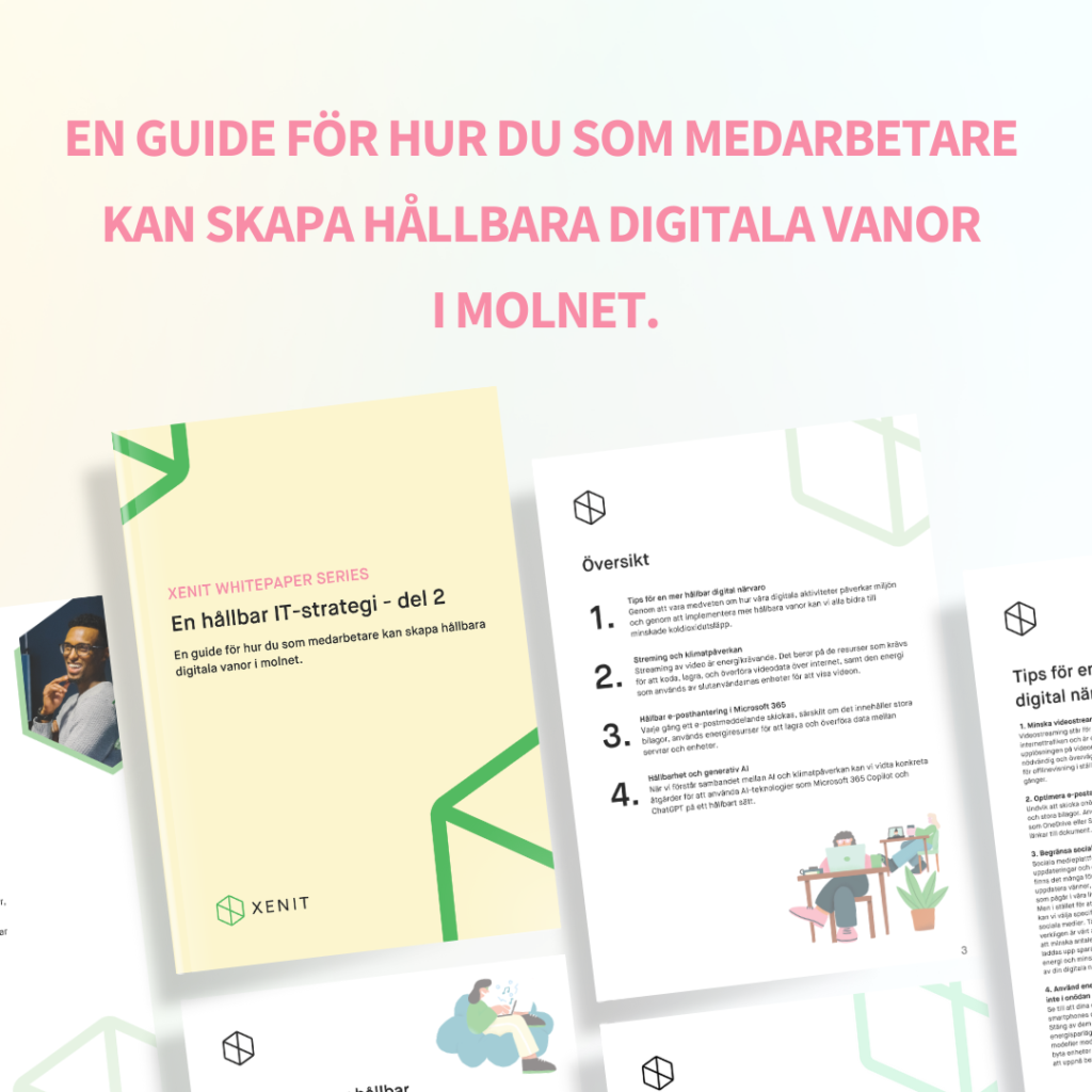 I en tid där den digitala arbetsplatsen och kommunikationen är en självklarhet, glömmer vi ofta bort att varje klick och varje mejl faktiskt lämnar ett avtryck på vår planet. I detta whitepaper bjuder vi på enkla steg du som medarbetare kan göra för att minska ditt klimatavtryck på jobbet.